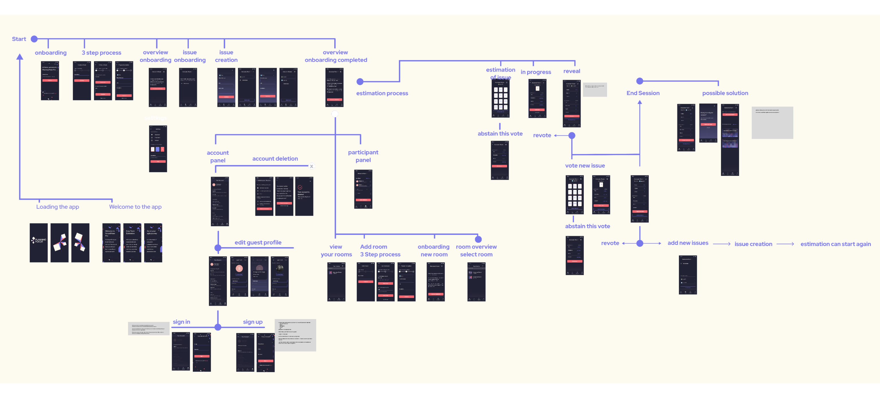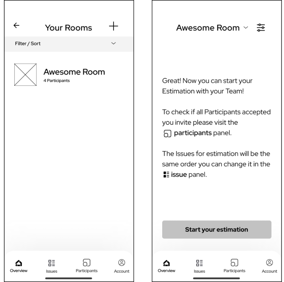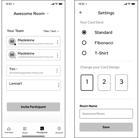 To rapidly create a prototype, we focused on the app version of the Planning Poker application. We identified the persona of the Product Owner as the most challenging, but also most vital flow, which is why it became our first priority.